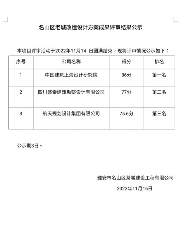名山區老城改造設計方案成果評審結果公示