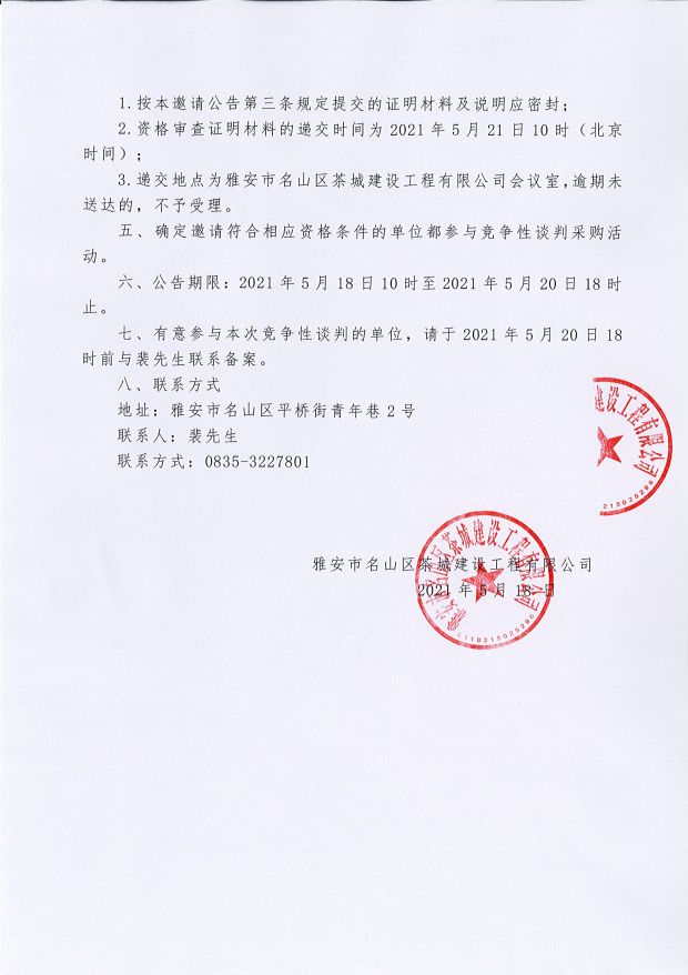 雅安市名山區茶城建設工程有限公司 關于公開招聘高校畢業生總成績排名及體檢、考察事宜的公告...